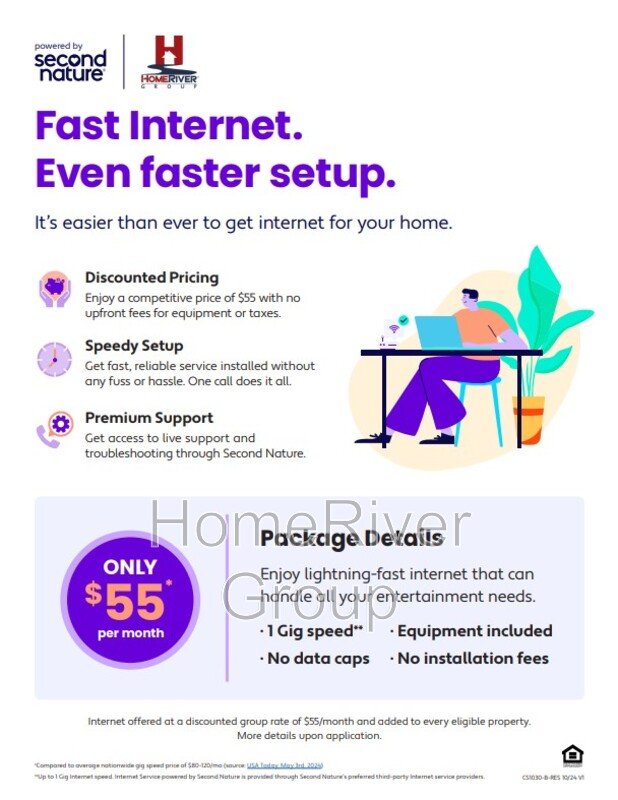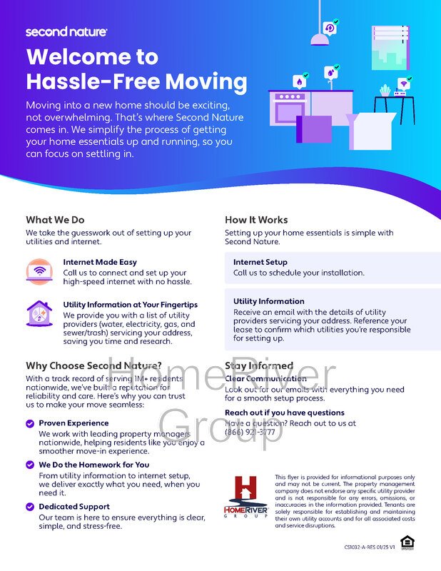*The estimated total monthly leasing price does not include utilities or optional/conditional fees, such as: pet, utility service, and security deposit waiver fees. Our Resident Benefits Package includes required Renters Insurance, Utility Service Set-Up, Identity Theft Protection, Resident Rewards, HVAC air filter delivery (where applicable), and Credit Building, all at the additional monthly cost shown above. To learn more about additional leasing fees and requirements, please contact HomeRiver Group at 833-774-6323.