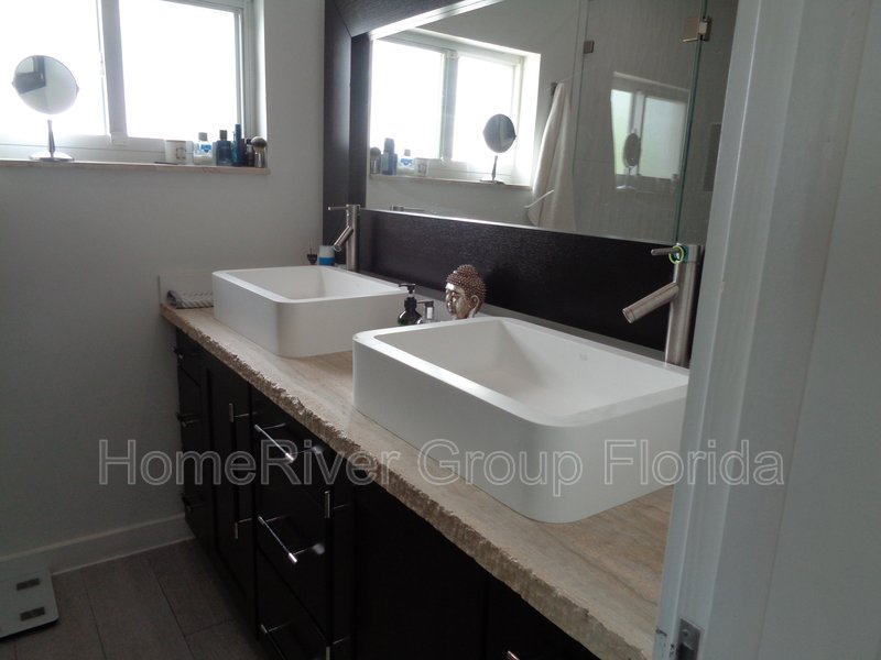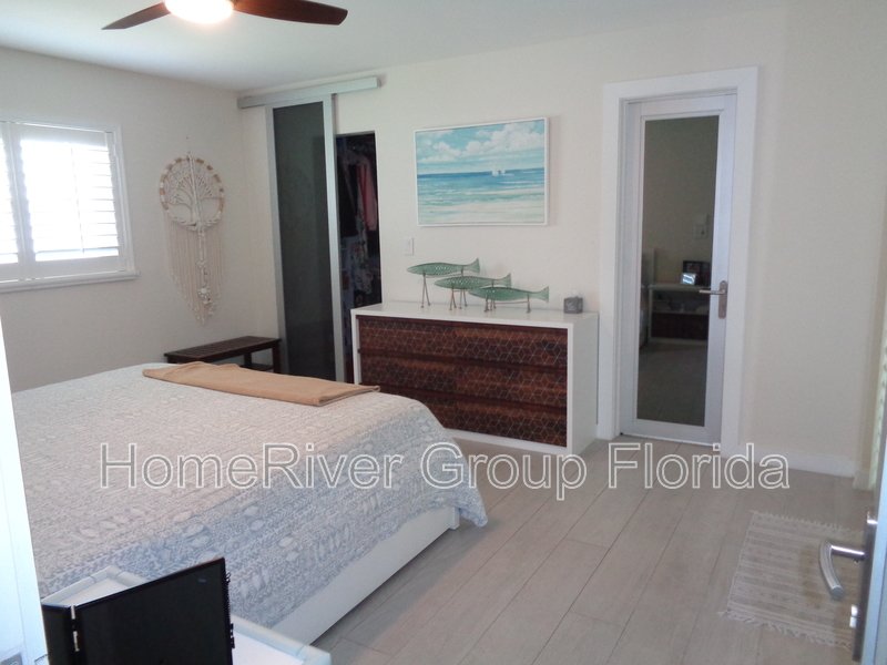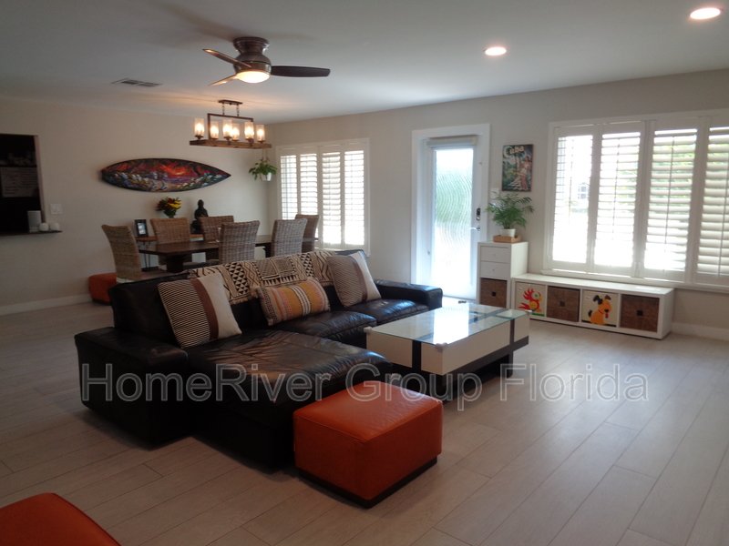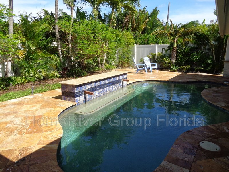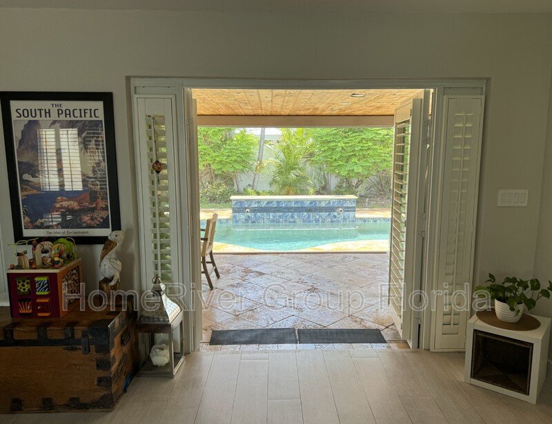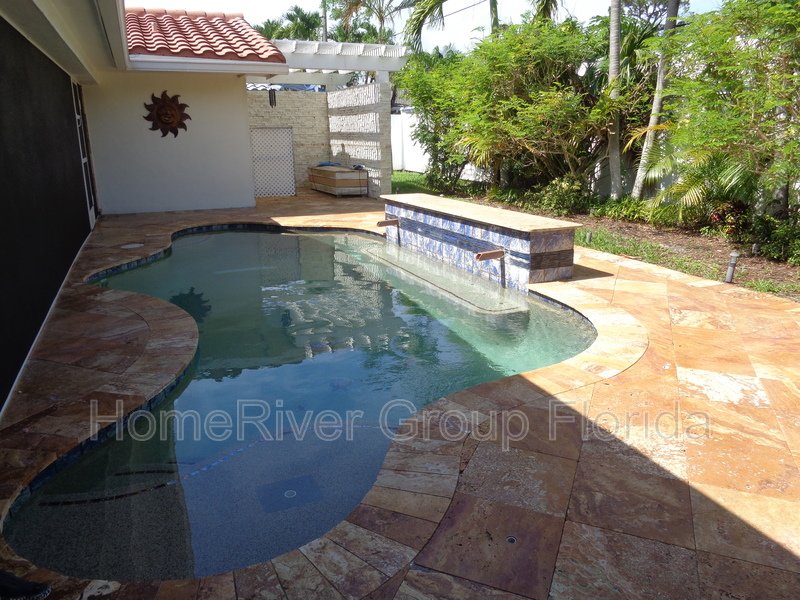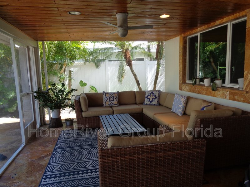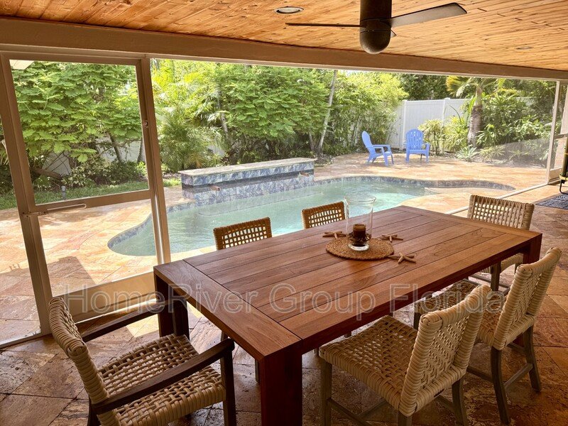 This house is the perfect blend of mid-century modern with a European flair. It features neutral interior flooring with Travertine pavers on the exterior. Updated bathrooms, closets & appliances with a sleek gourmet kitchen complete the package. There's a large screened in patio with handcrafted wood ceilings, which overlooks a newer pool. The yard is very private. It contains an outdoor shower and is fully fenced in. The property has impact windows, a one car attached garage, and a huge circular driveway to accommodate several vehicles. Property is offered unfurnished, but some furniture may be negotiable.